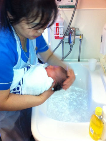 This morning I was sleeping and Jie woke me up. I was a little upset at first but all she wanted was to weigh me, wash me and get me dressed so I can’t blame her. The bad news is she has a day off tomorrow so I am going to miss her. The picture is of Jie helping me with my bath. Don’t tell anyone but she is my favourite in here.
